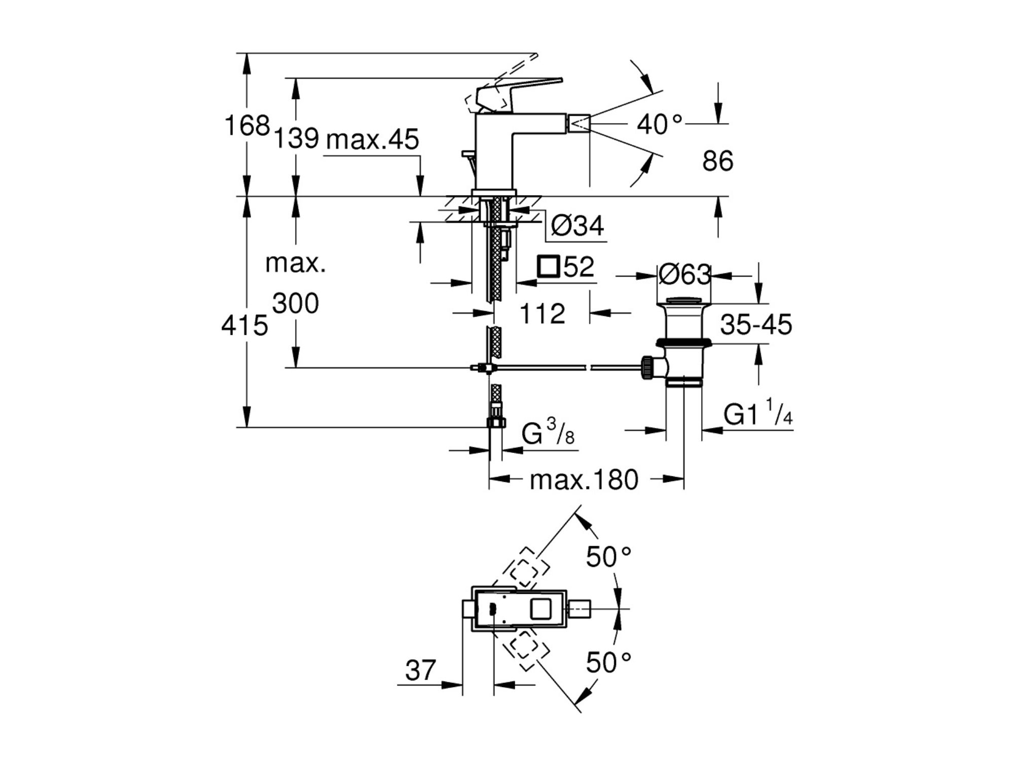 Grohe Eurocube jednoručna slavina za bide S-veličina 23138000